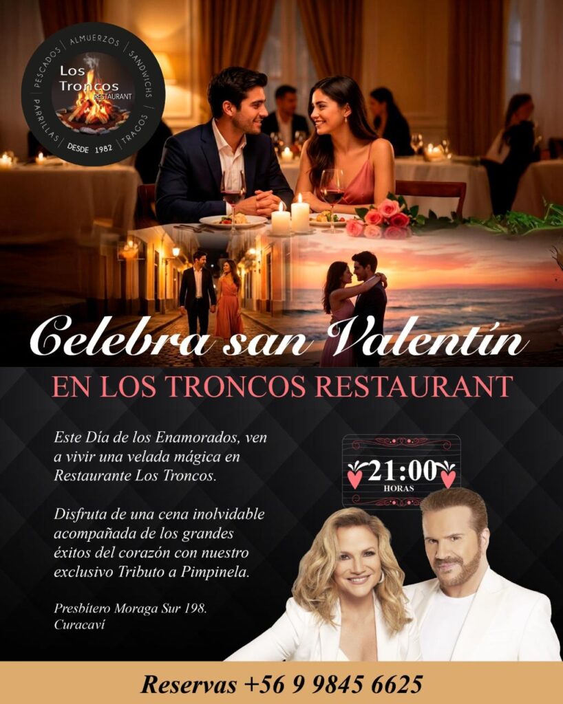 Te invitamos a vivir una velada mágica, donde cada detalle ha sido preparado para crear un ambiente íntimo y acogedor. Disfruta de una cena inolvidable, acompañada de los grandes éxitos del corazón con un exclusivo Tributo a Pimpinela, ideal para cantar, emocionarse y celebrar el amor como se merece.